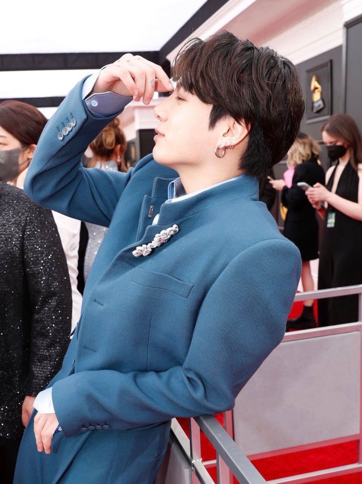 이번 그래미 레드카펫에서 블루 계열 의상을 입기도 했는데