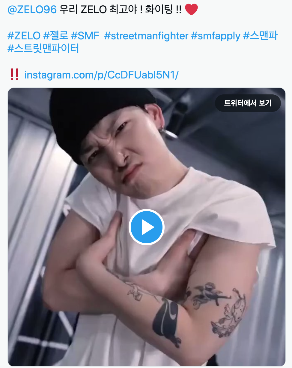 “@ZELO96 우리 ZELO 최고야 ! 화이팅 !! ❤️ #ZELO #젤로 #SMF #streetmanfighter #smfapply #스맨파 #스트릿맨파이터 ‼️ https://t.co/r1jtgSgB7c https://t.co/qRxf34eKa0”