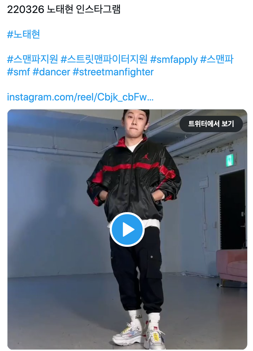 “220326 노태현 인스타그램 #노태현 #스맨파지원 #스트릿맨파이터지원 #smfapply #스맨파 #smf #dancer #streetmanfighter https://t.co/Athuvp6Qnk https://t.co/QBlwHlwsPv”