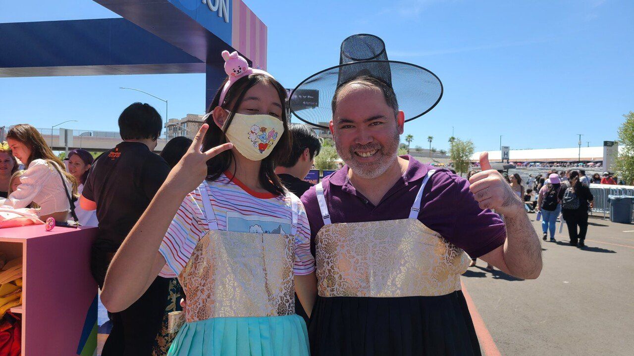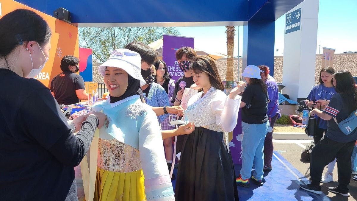 “Have you ever tried on #Hanbok, Korean traditional clothes? At #AllegiantStadium where #PTD_ON_STAGE_LV is held, you can experience Koreanness! #BTS septet loves Hanbok, so you must try😎🇰🇷💜 #LasVegas #BTSARMY #BTS_THE_CITY_LasVegas #BT