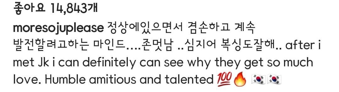 “Bro is super humble ambitious and talented. Can definitely see why they get so much love 🔥🔥🇰🇷 JK is a dope genuine person”