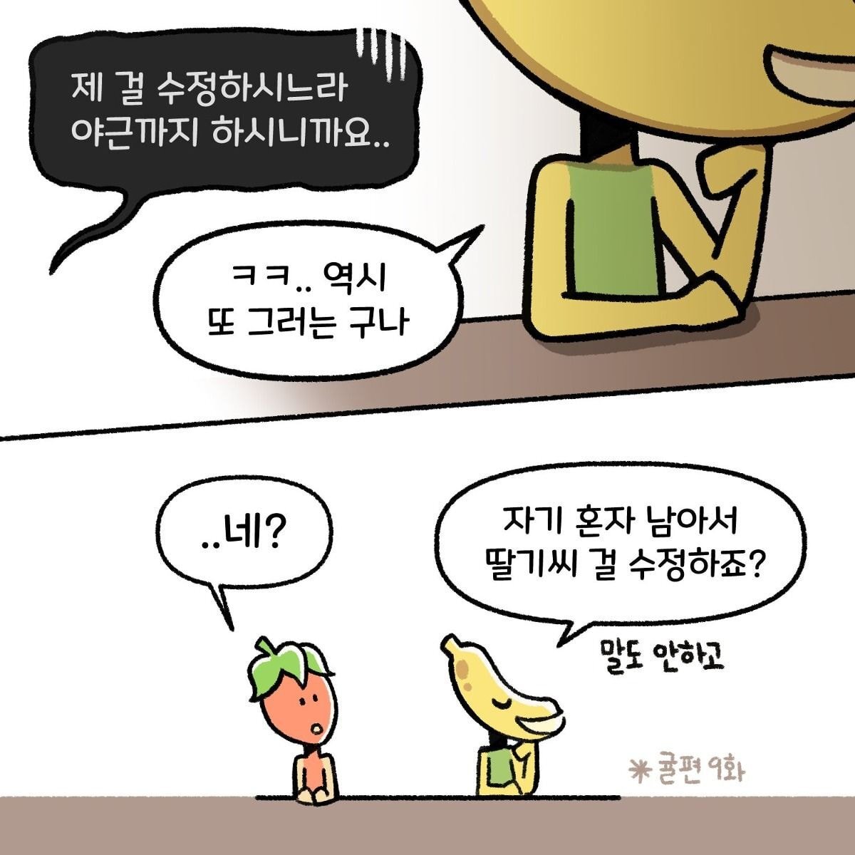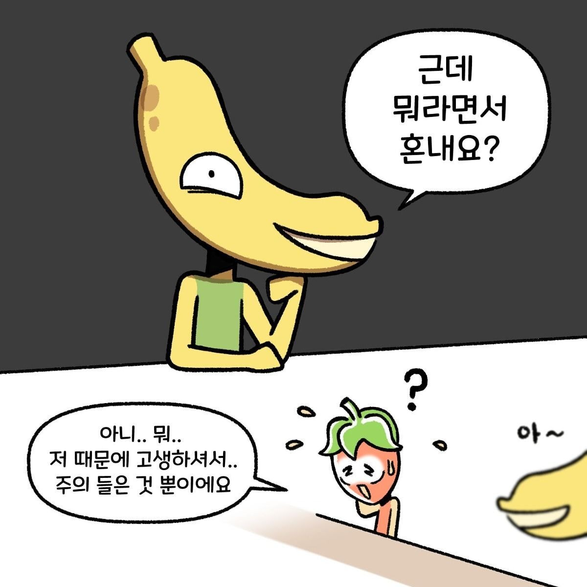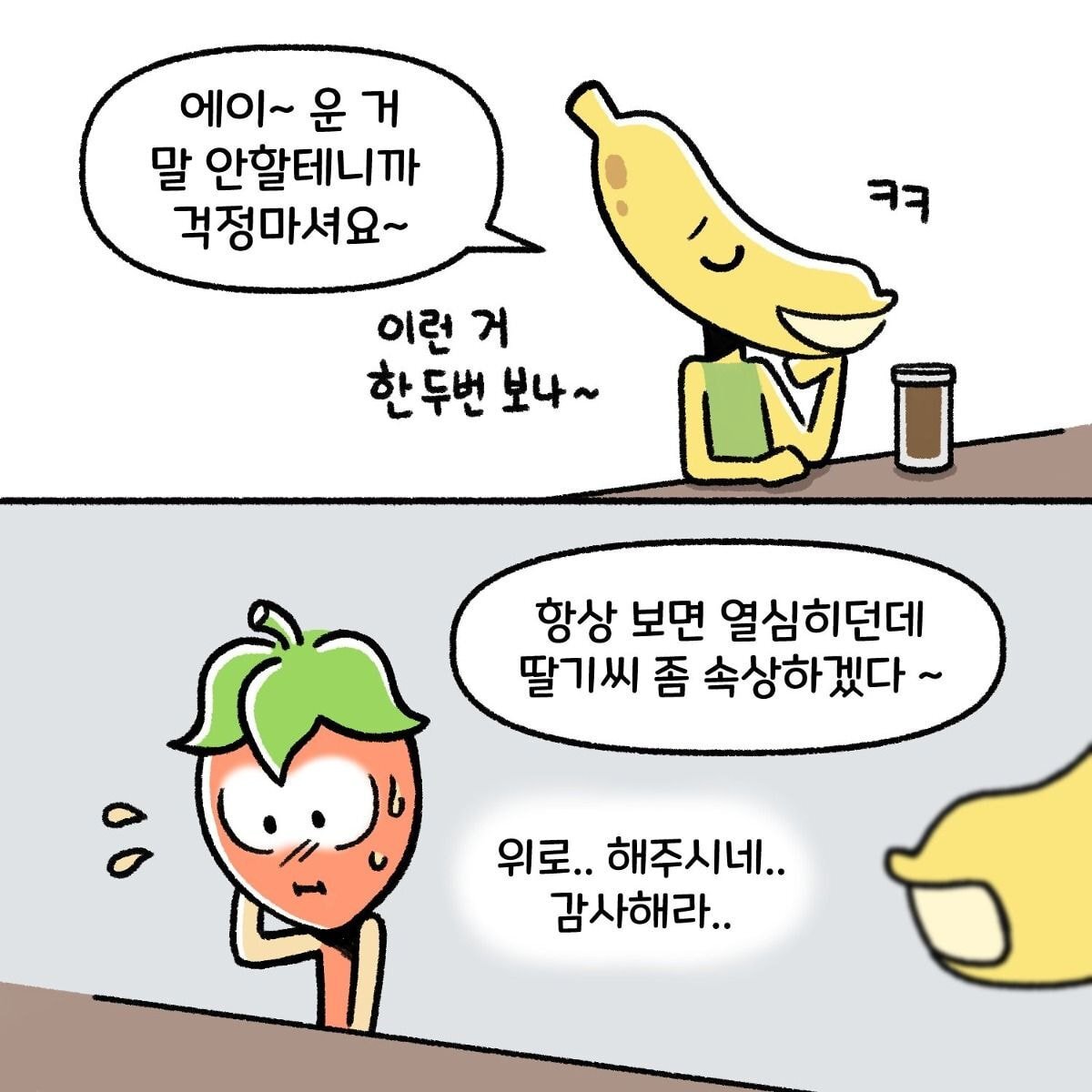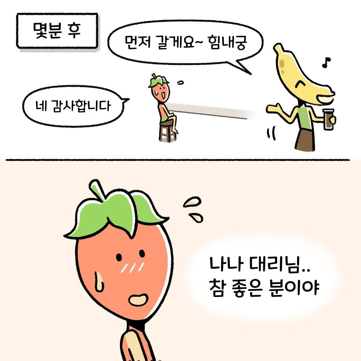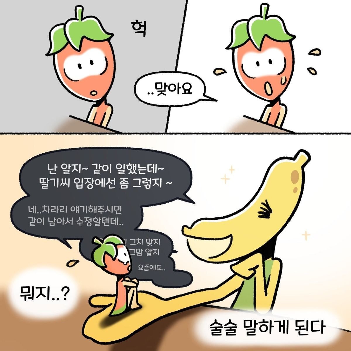 반면에 원래부터 못되게 굴던 상사(바나나)가 적선하듯이 던진 위로 한마디에 오히려 더 고마워하고 바나나를 좋은 상사로 생각