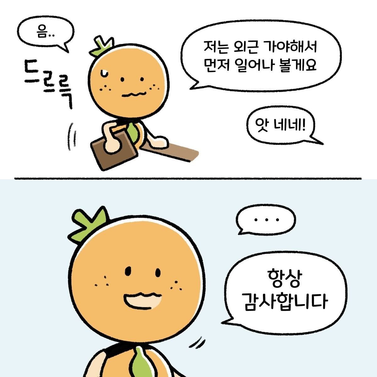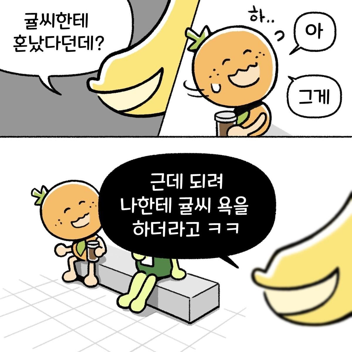 좋은 상사(귤)이 참다참다 못해서 싫은 소리 좀 하면 그동안 참아준건 생각안하고 엄청 서러워함