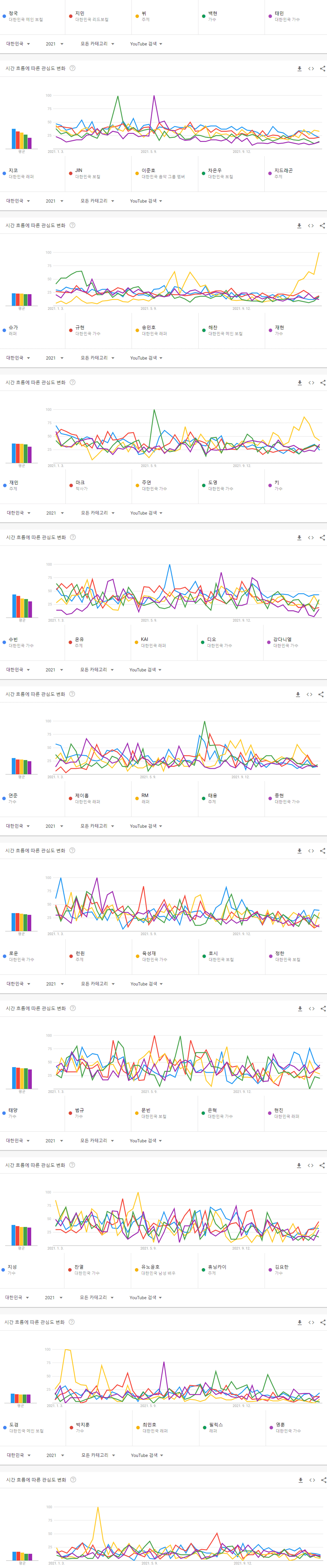 2021년 국내 유튜브에서 가장 많이 검색된 남자아이돌 TOP50