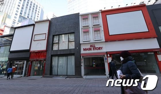 (서울=뉴스1) 안은나 기자 = 16일 서울 중구 명동거리의 상점에 연이어 임대문의 안내문이 붙어 있다. 정부는 오는 17일부터 3주 동안 사회적 거리두기 조치를 연장하기로 결정했다. 이번 거리두기