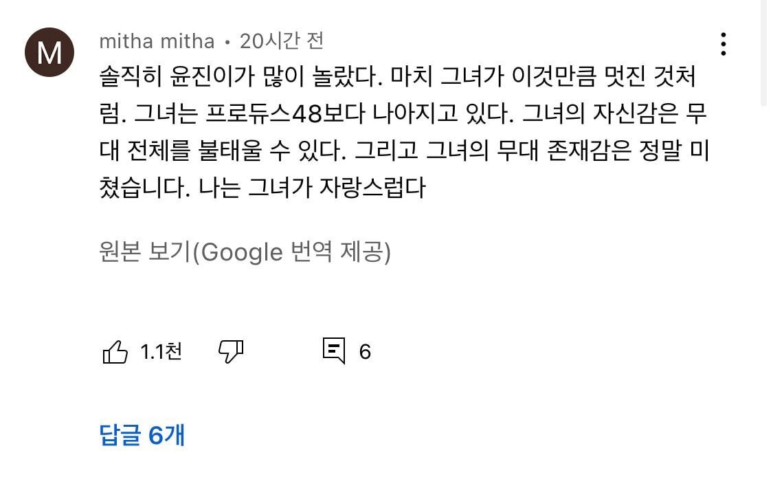 한국어 댓, 영어 댓 할 거 없이 허윤진 칭찬하는 댓글들이 넘쳐남