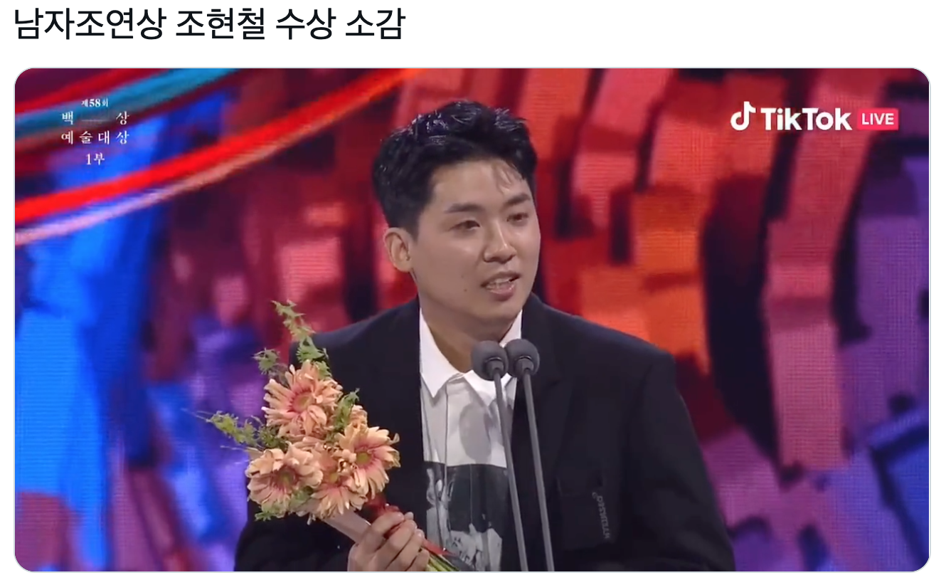 “남자조연상 조현철 수상 소감 https://t.co/qrMoZr49Ma”