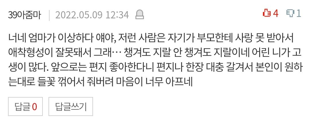넌 왜 너 위주로 편지를 써? 이러시고