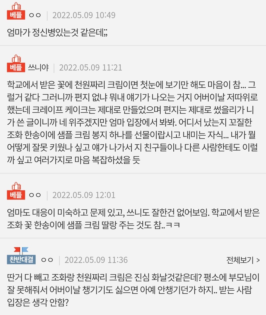 매번 어버이날마다 품평회가 이루어져