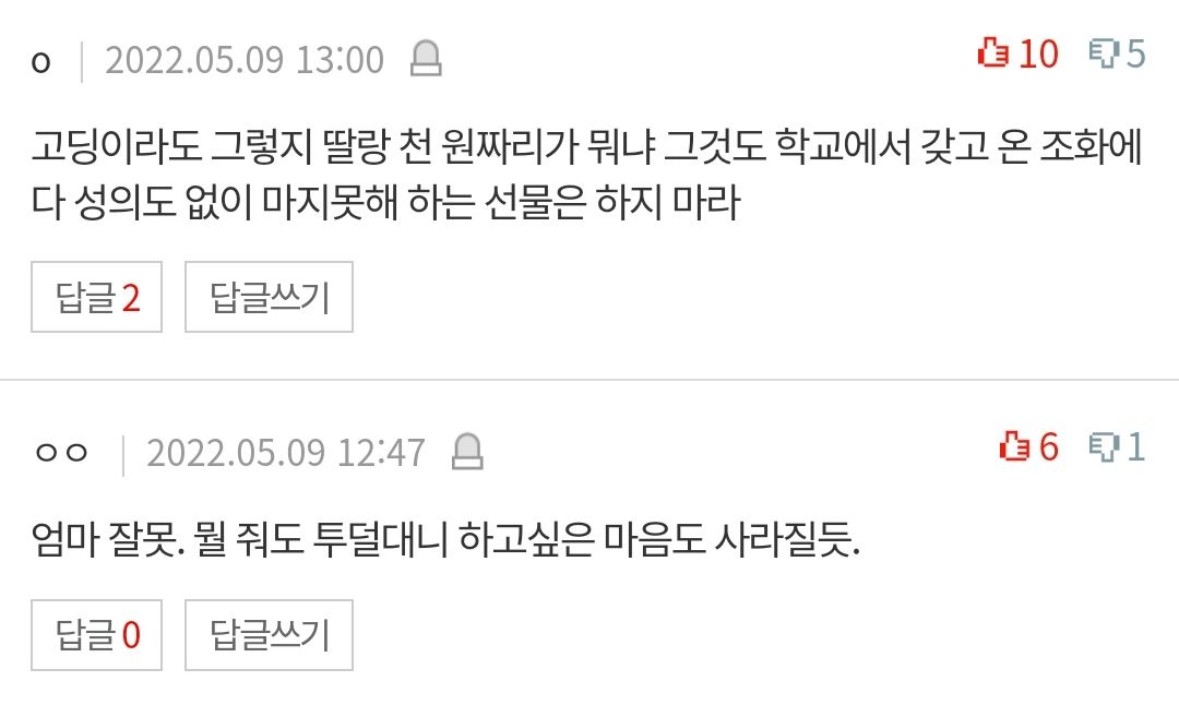 와 여기서 선물로 꼬투리 잡는 댓글들 실화냐;;