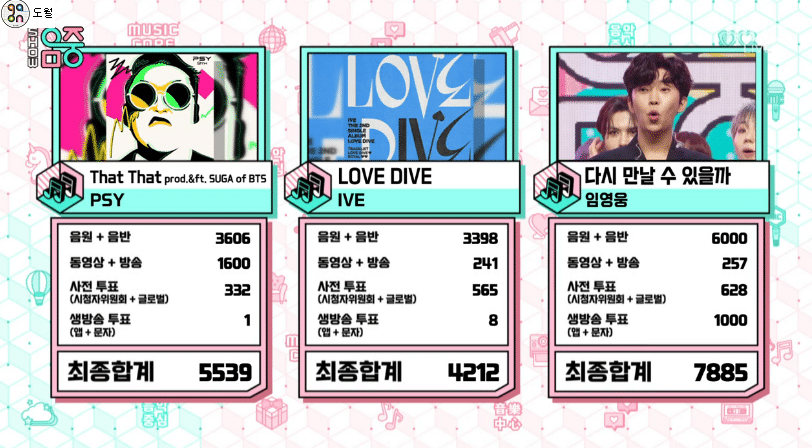 | 오늘자 뮤뱅 1위 점수 르세라핌 1위 (0) | 2022.05.13 |