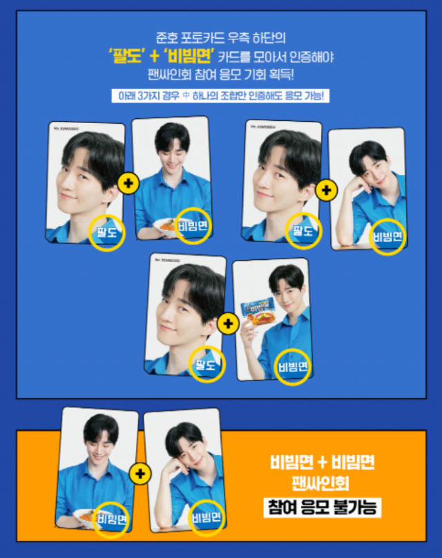 팔토와 비빔면 각각 이단어의 글이 찍혀있는 포토카드가 나오면 팬싸인회 응모할수있는데