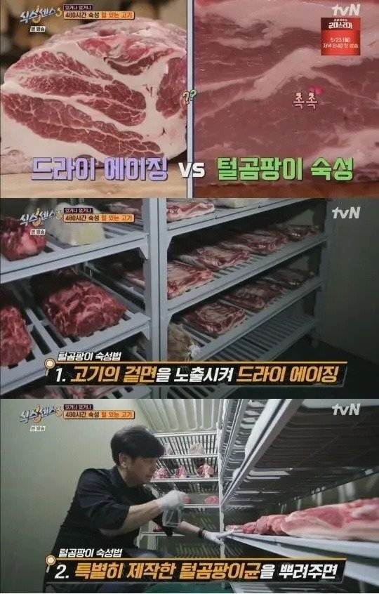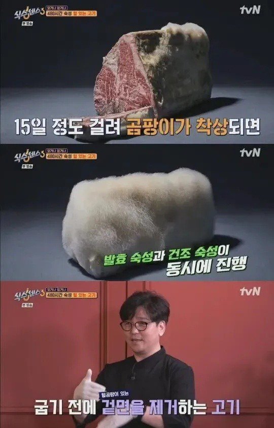 가게 들어가니 털곰팡이 숙성 고기라고 실물까지 보여줬는데
