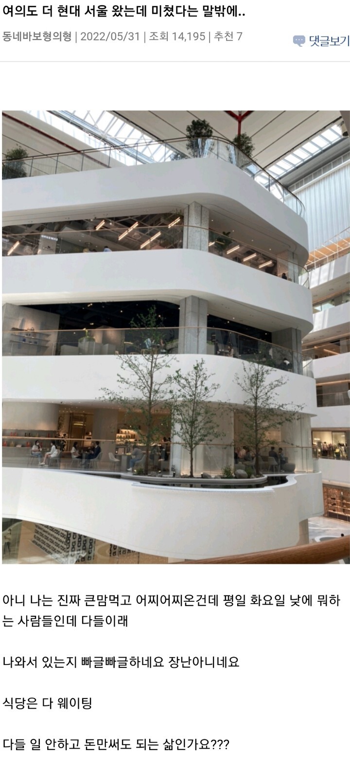평일 낮에 백화점에서 여유 즐기는 사람 바글바글해서 충격