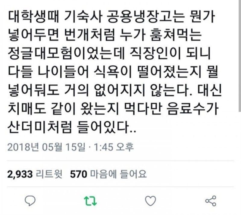 레알 넣어둔 사람이 먹어야하는데 넣어둔 사람은 까먹고 다른 사람은 안먹음