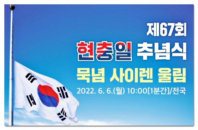현충일 추념식에 맞춰 오는 6일 오전 10시부터 1분 간 전국적으로 조국수호를 위해 헌신·희생한 순국선열과 호국영령의 애국정신을 기리는 사이렌이 울린다.