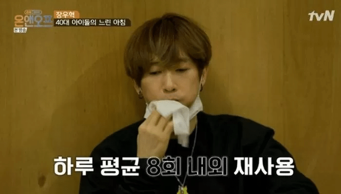 이날 장우혁은 물티슈를 재활용한다면서 한 번 뽑으면 오래 쓰는 편이라고 말했다.