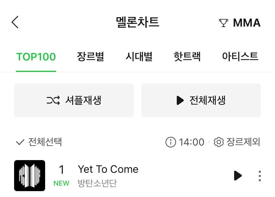방탄 멜론 TOP100(실시간 차트 X) 진입 1위