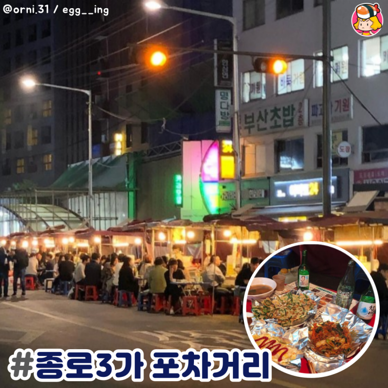 저녁에는 앉을 자리가 없을 정도로 몰리는 포차거리