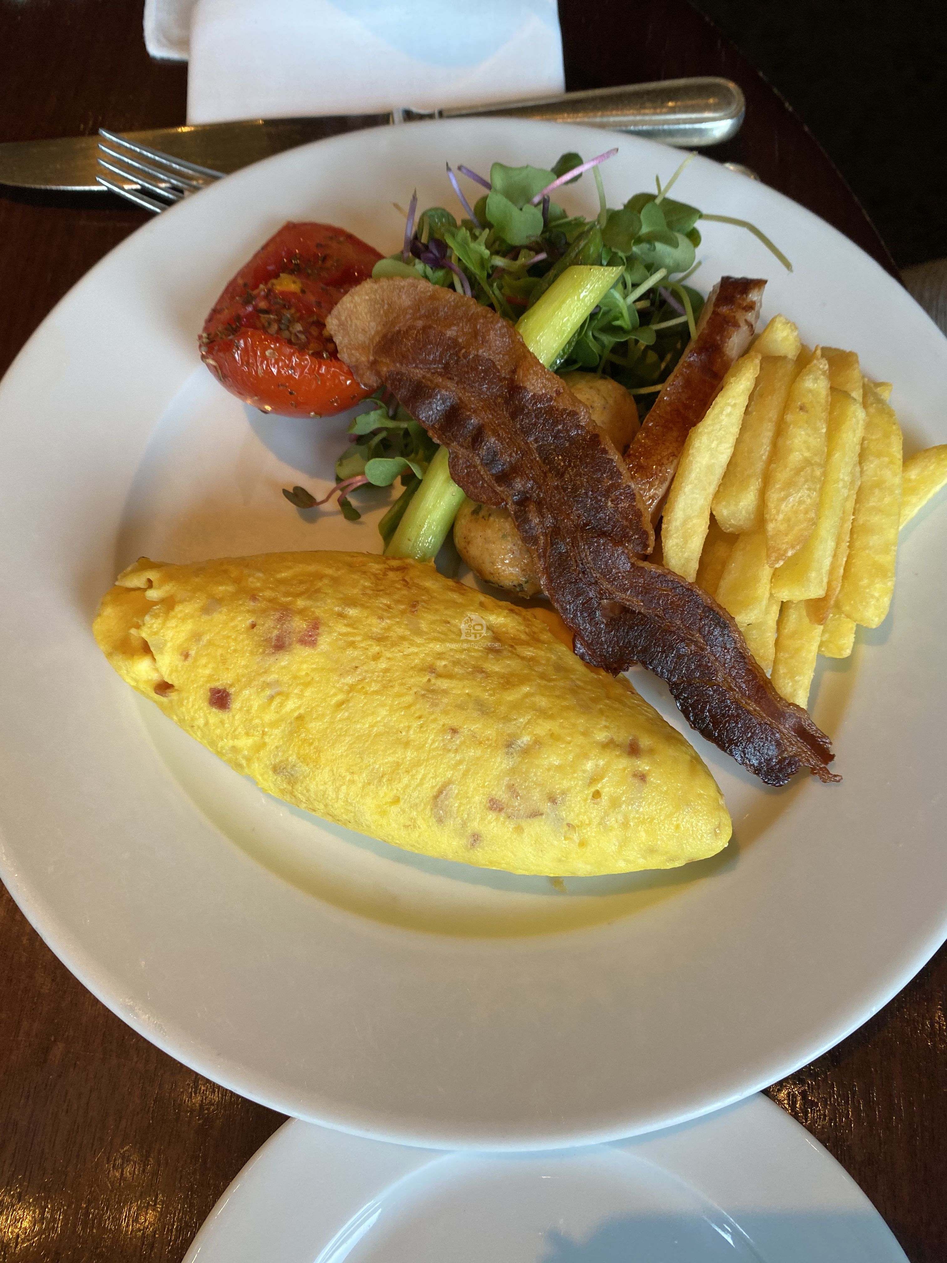 다만 식사도 겸했었던지라 브런치도 주문하였는데, 오믈렛과 와플 브런치입니다