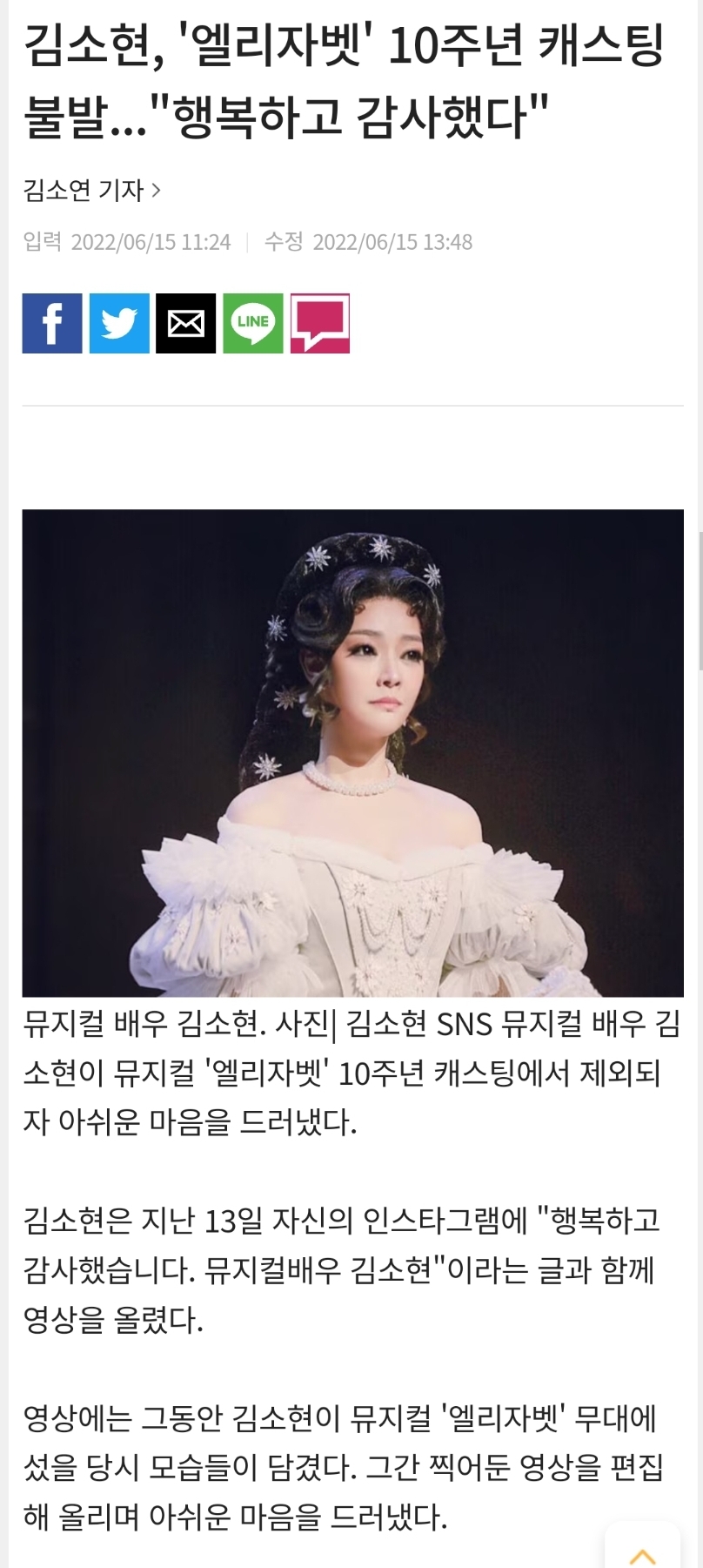 근데 엘리자벳이 올해 10주년이라 공연을 하는데 거기 김소현이 빠지고 옥주현이 들어갔다고 난리난 상태