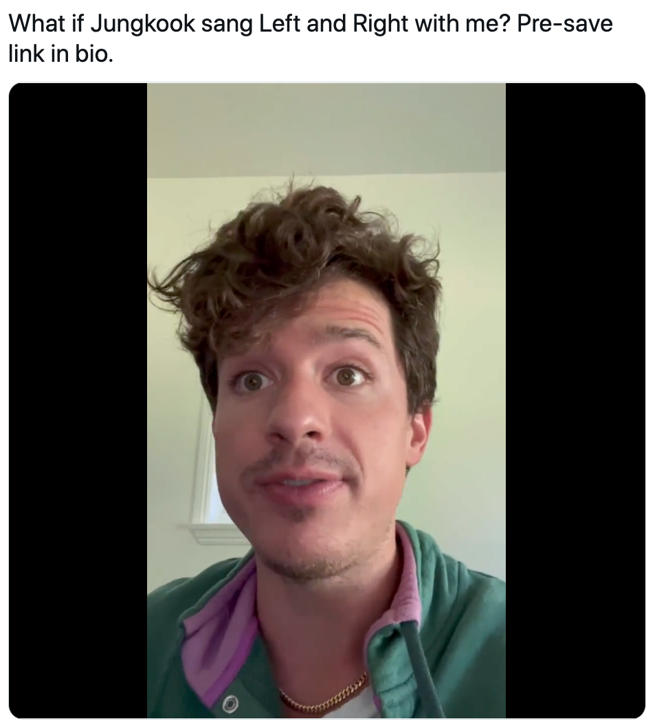 “What if Jungkook sang Left and Right with me? Pre-save link in bio.”