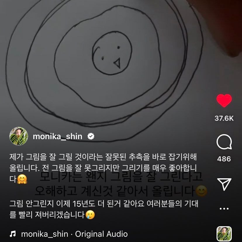 평소 본인이 말했던 그림실력 (스스로 자기는 별로 예쁘지 않다고 말할 정도로 지독한 하하버스에 갇혀계신 편)