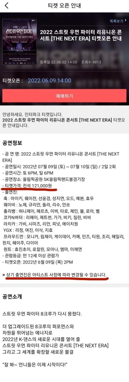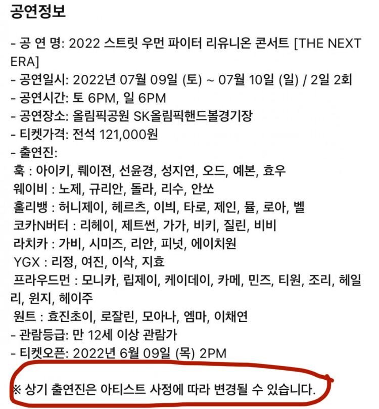 공연 예매 페이지에 '스페셜 게스트는 사정에 따라 변경될 수 있다'라는 내용이 공지돼 있었고