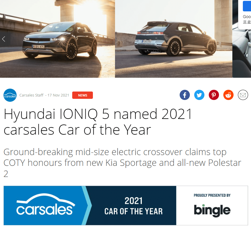2021 호주 카세일즈 올해의 차(carsales Car of the Year) 선정