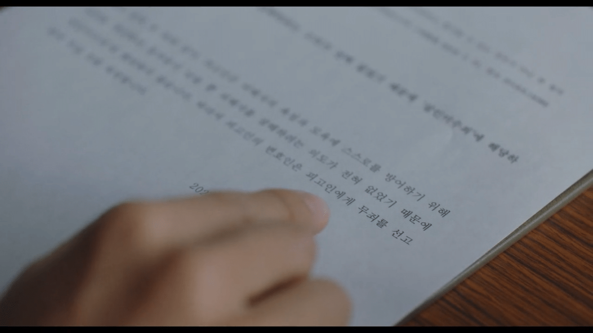 어쨌든 무사히 피고인을 만나고 온 영우는 명석에게 변호인 의견서를 제출하는데