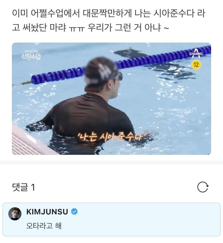 퍼지고 있는 수영모 짤을 어제 발견했던 김준수