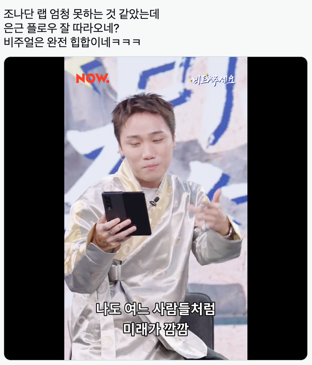 “조나단 랩 엄청 못하는 것 같았는데 은근 플로우 잘 따라오네? 비주얼은 완전 힙합이네ㅋㅋㅋ”