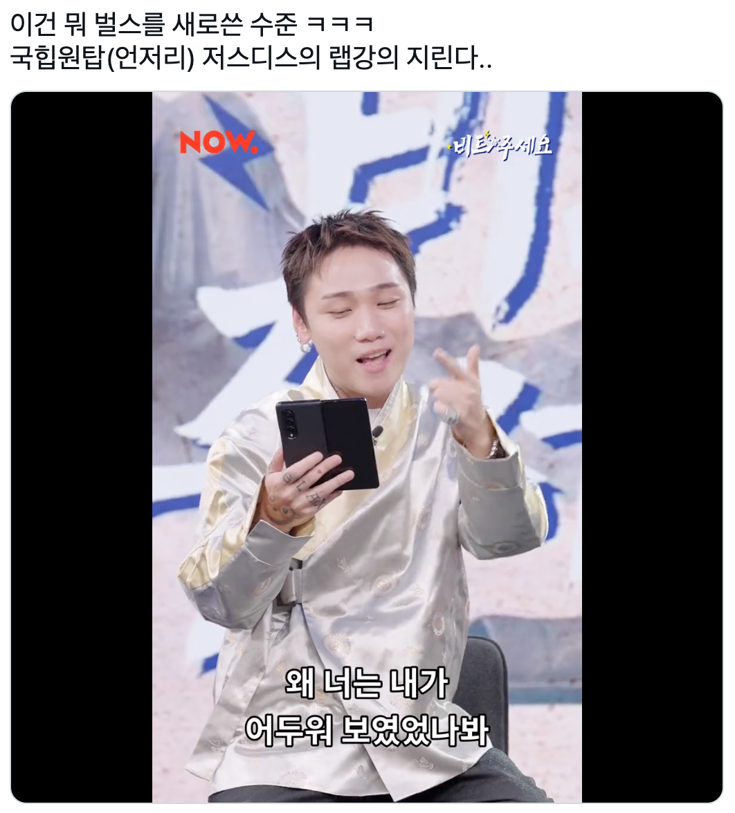 “이건 뭐 벌스를 새로쓴 수준 ㅋㅋㅋ 국힙원탑(언저리) 저스디스의 랩강의 지린다..”