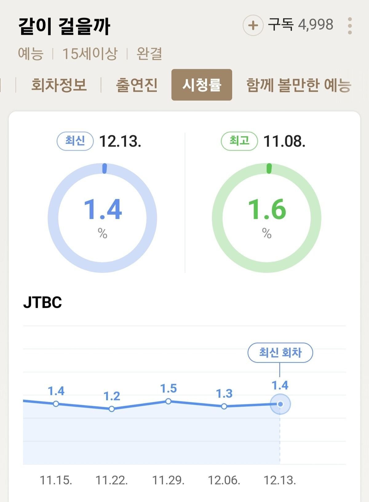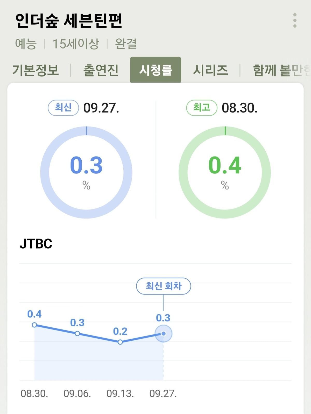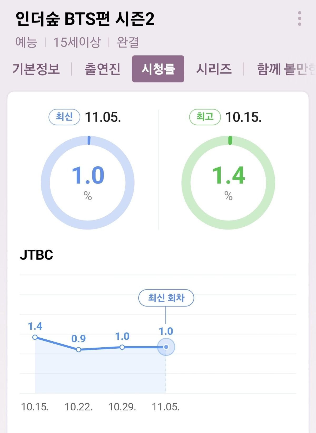 (시간대랑 플랫폼 동시 방영 등 차이가 있어서 미세하게 조금씩 차이는 있는거..)
