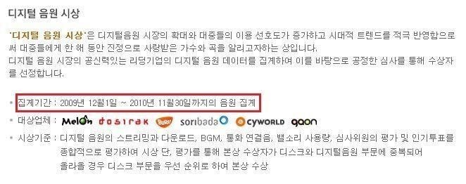 당일 오전까지도 홍보 자료를 한국 유일의 단일 대상 시상식으로 홍보-큐시트에서 음원대상이 있다는게 밝혀짐.