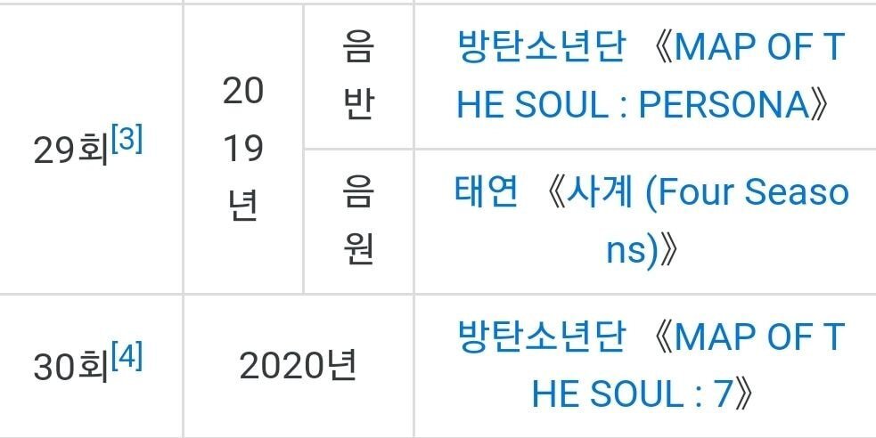 음반/음원/투표 합산으로 주는 대상을 세분야 다 뭐하나 압도적이거나 높지않은 심지어 음원은 연간 미진입인 NCT127이 대상을 수상함.