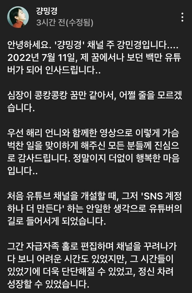 100만 유튜버 달성