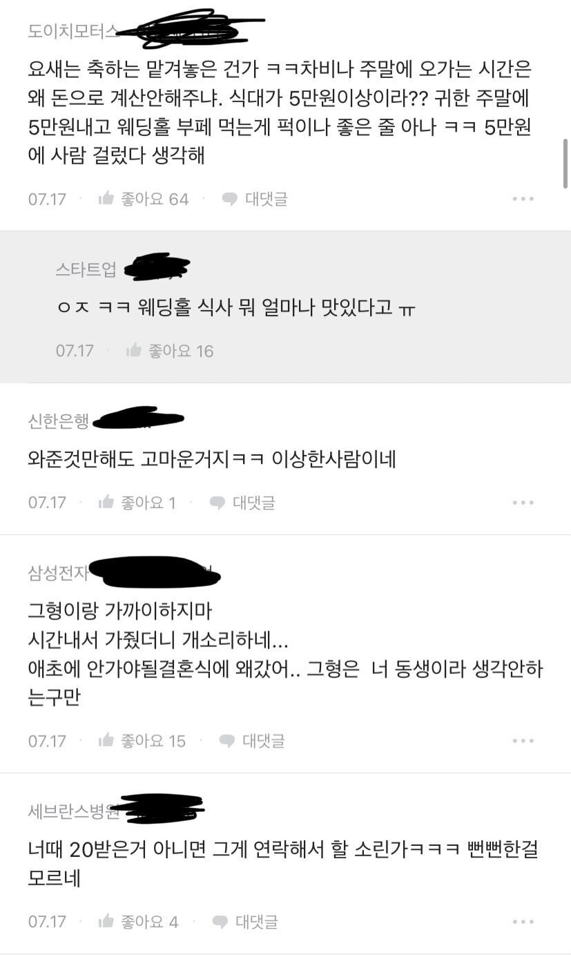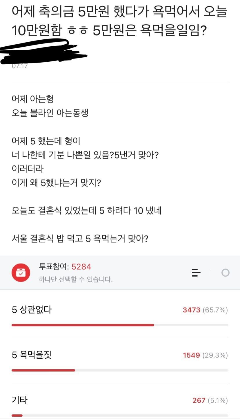 본인 잔치인데 왜 남의 축의금으로 식장 비용 댈려고 하냐는 의견으로 나뉨