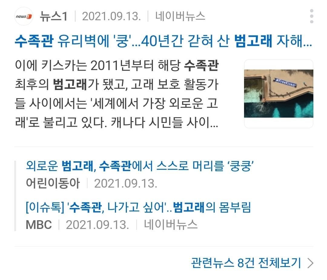 수족관에 갇혀 자유를 갈망하는 범고래