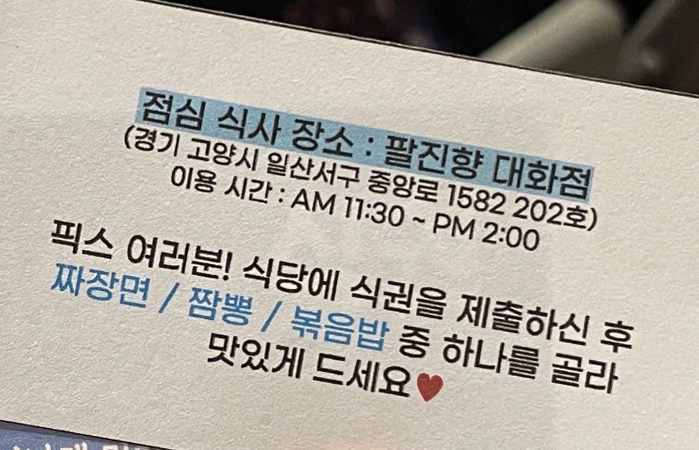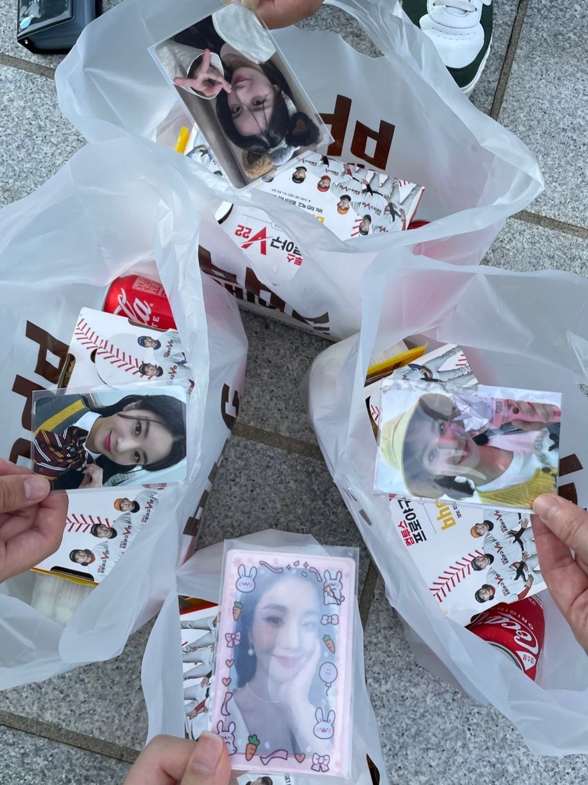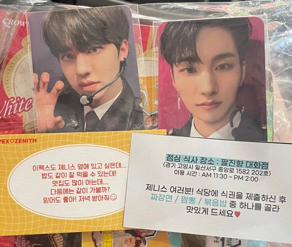 같은 회사소속 아이돌들 전부 통일해서 햄버거세트 쿠폰이랑 간식을 줬는데