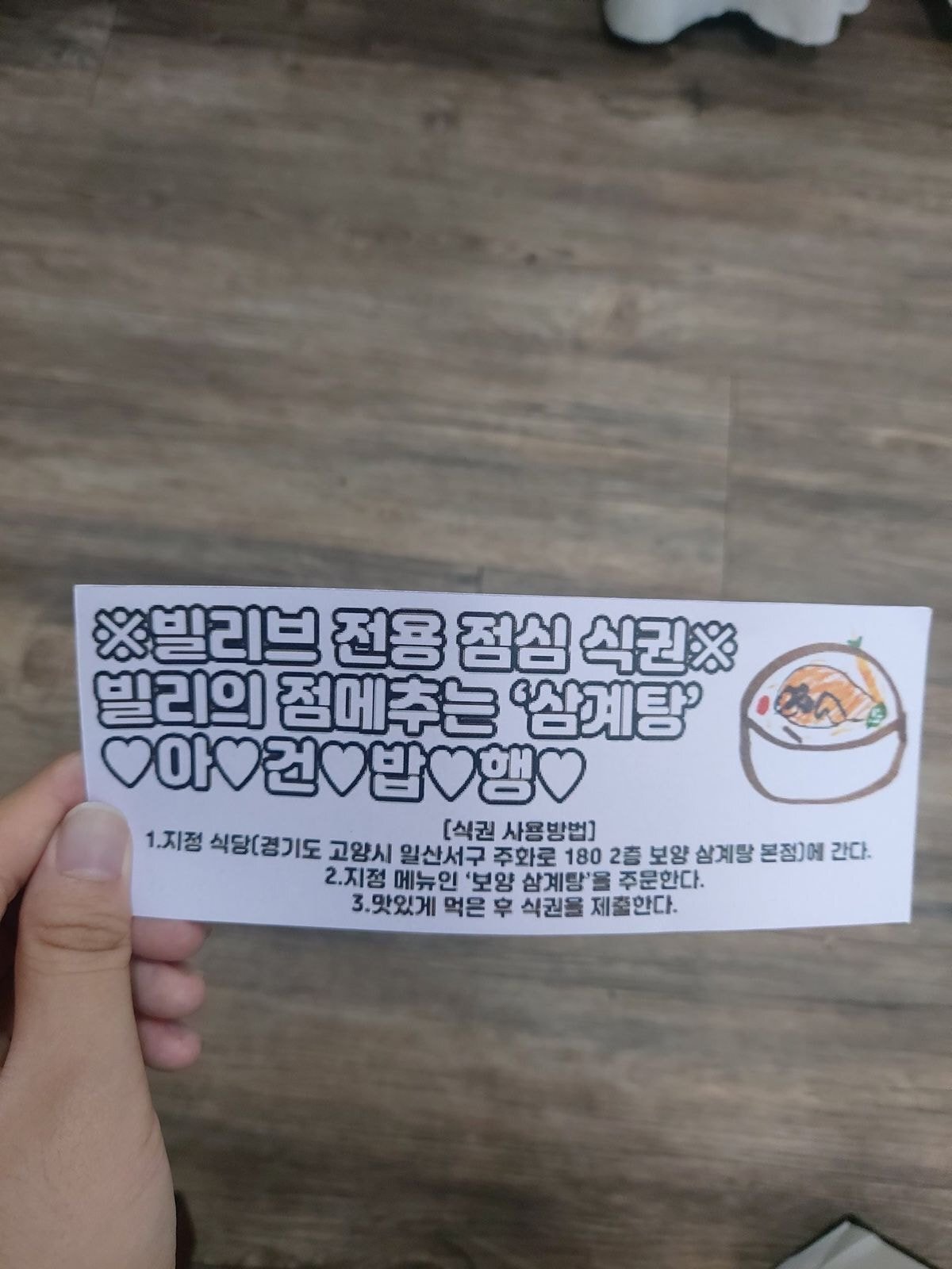 멤버가 직접 만든 쿠키, 샌드위치, 삼계탕, 스타벅스 만원권 쿠폰