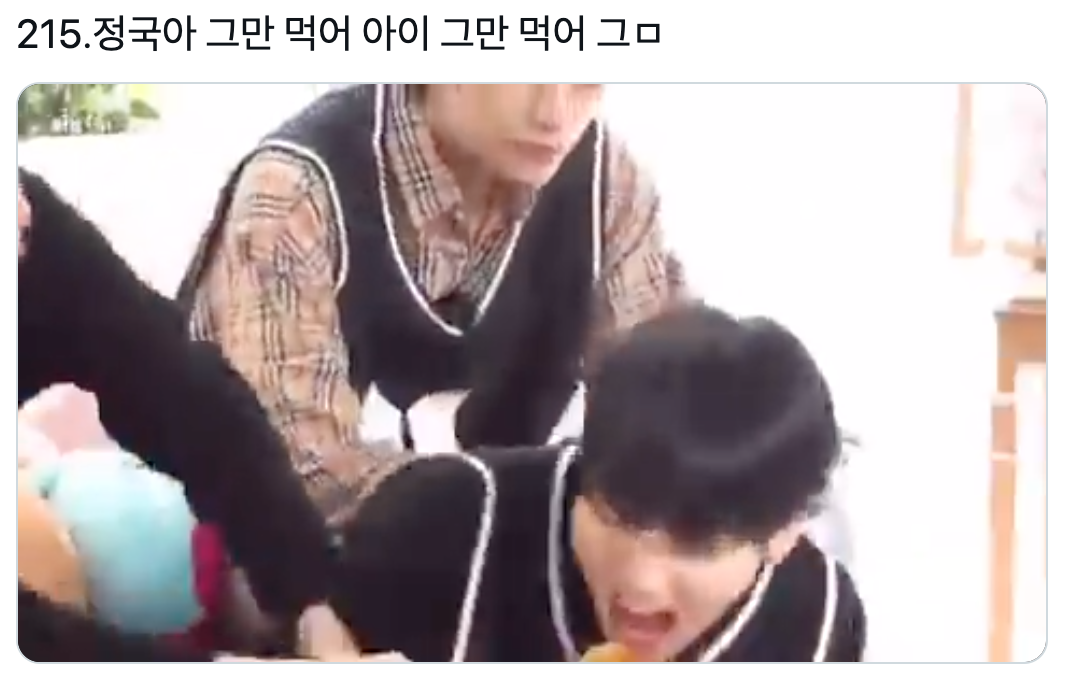 10. "정국아 그만 먹어 아이 그만 먹어 그ㅁ"