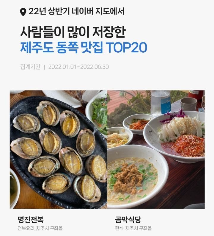 | 네이버에서 공개한 제주 맛집리스트 TOP 100위 (0) | 2022.08.17 |