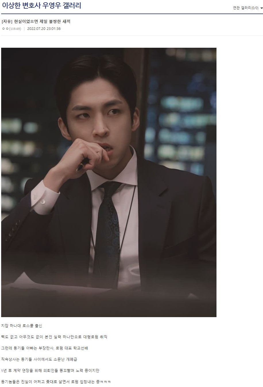 | 이상한 변호사 우영우 - 오늘 드영배들이 모두 다 반한 캐릭터 (0) | 2022.08.04 |