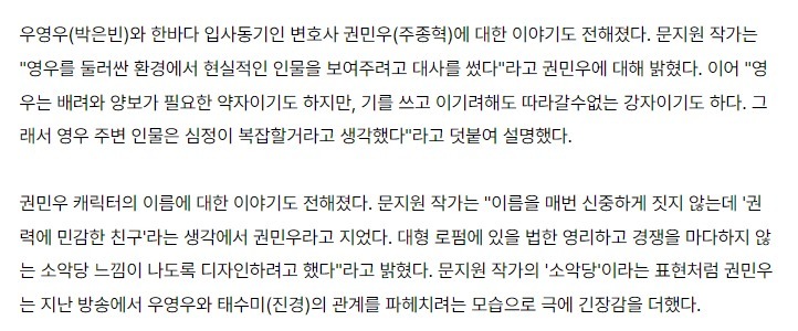 '우영우' 작가 "권민우=권력에 민감한 친구(友) 줄임말"