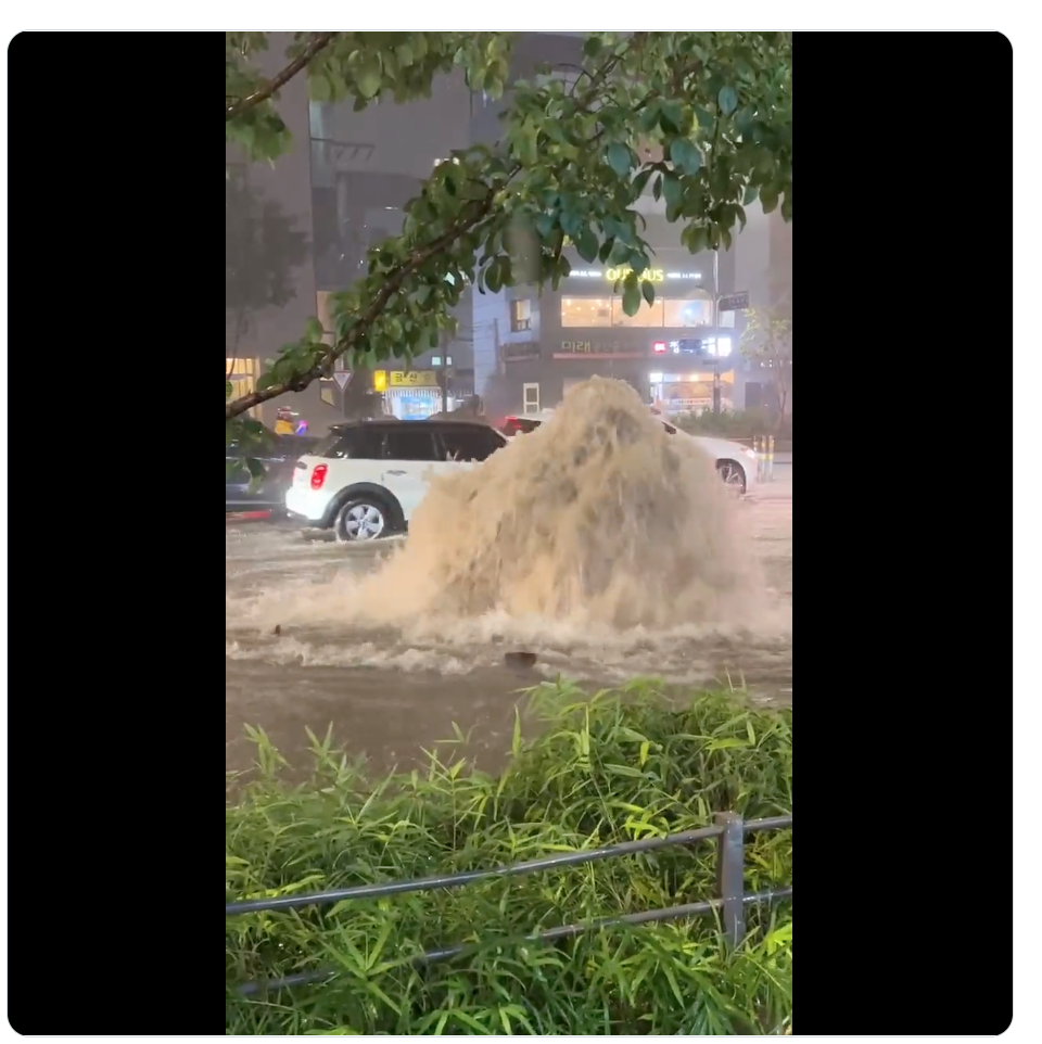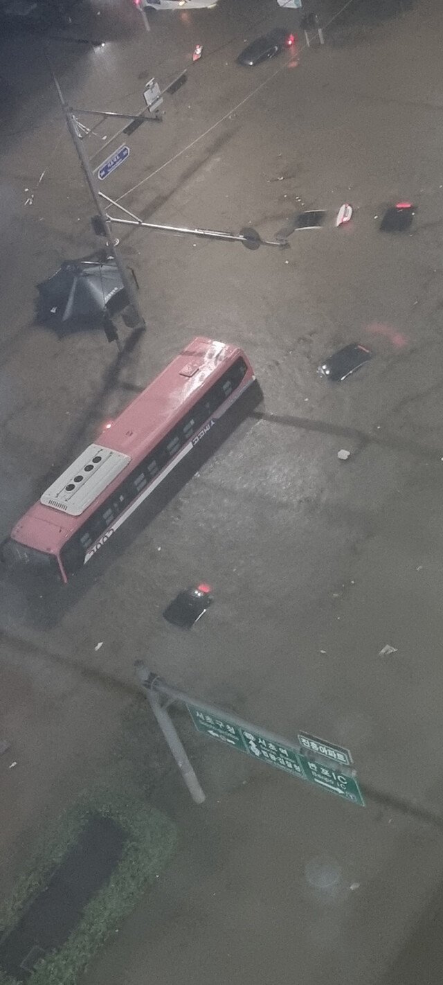 실시간 서울 보라매역 cctv. 침수중. 차량들 꼼짝 못함