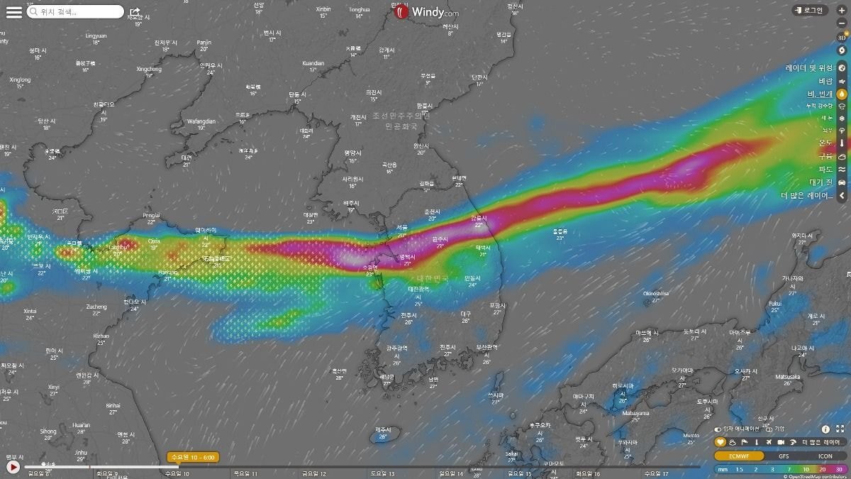 지면은 30도 구름 상부가 -40~-60도면 온도차에 의해 대기가 매우 불안정해짐