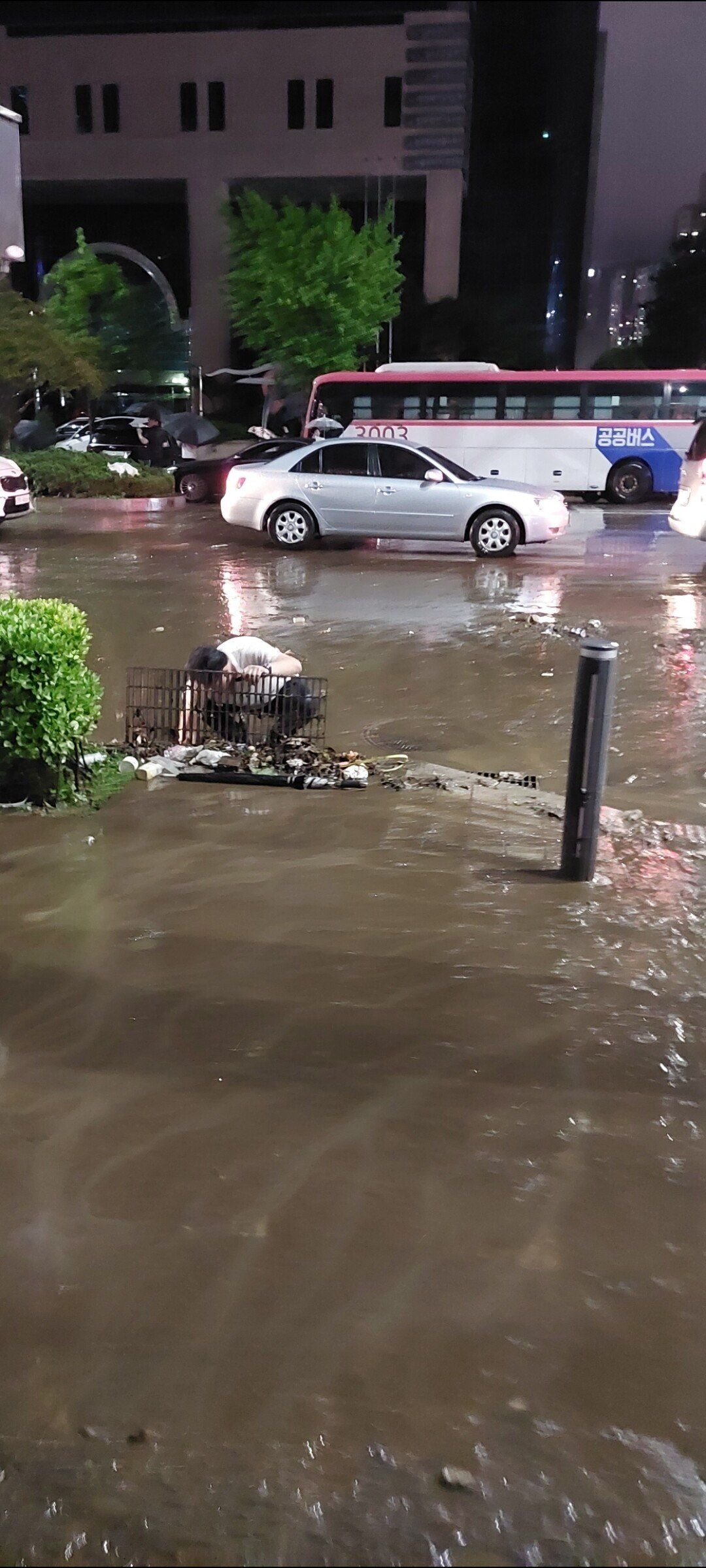 아저씨 한 분이 폭우로 침수된 강남역 한복판에서 배수관에 쌓여있는 쓰레기를 맨손으로 건져냄. 덕분에 종아리까지 차올랐던 물도 금방 내려감. 슈퍼맨이 따로없음