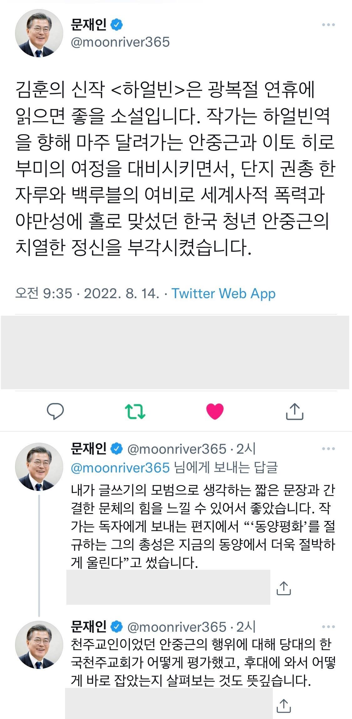 “김훈의 신작 <하얼빈>은 광복절 연휴에 읽으면 좋을 소설입니다. 작가는 하얼빈역을 향해 마주 달려가는 안중근과 이토 히로부미의 여정을 대비시키면서, 단지 권총 한자루와 백루블의 여비