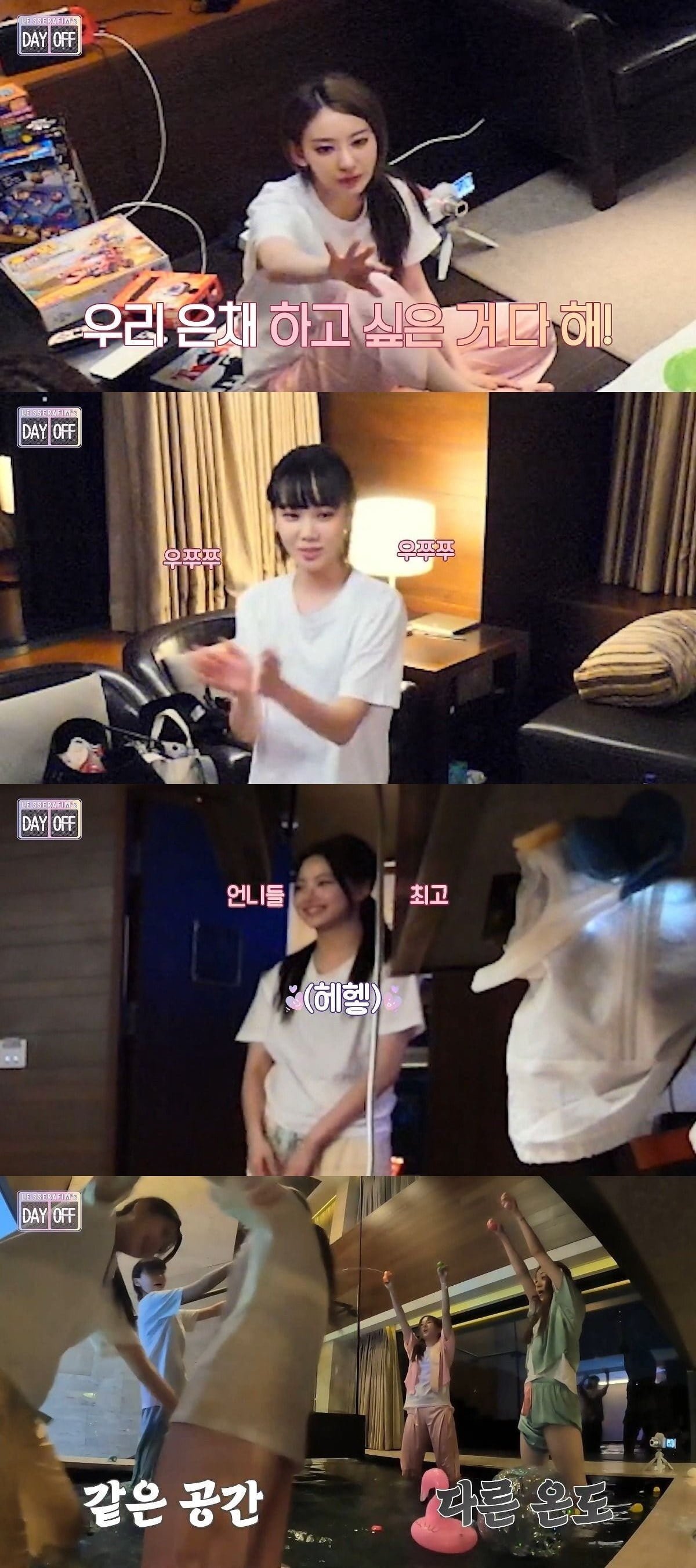 (인기가요 막방 끝내고 대면팬싸 한 다음에 호캉스와서 식사하고 마리오카트, 할리갈리 트위스터까지 조져서 언니들은 힘들어죽겠는 상태)